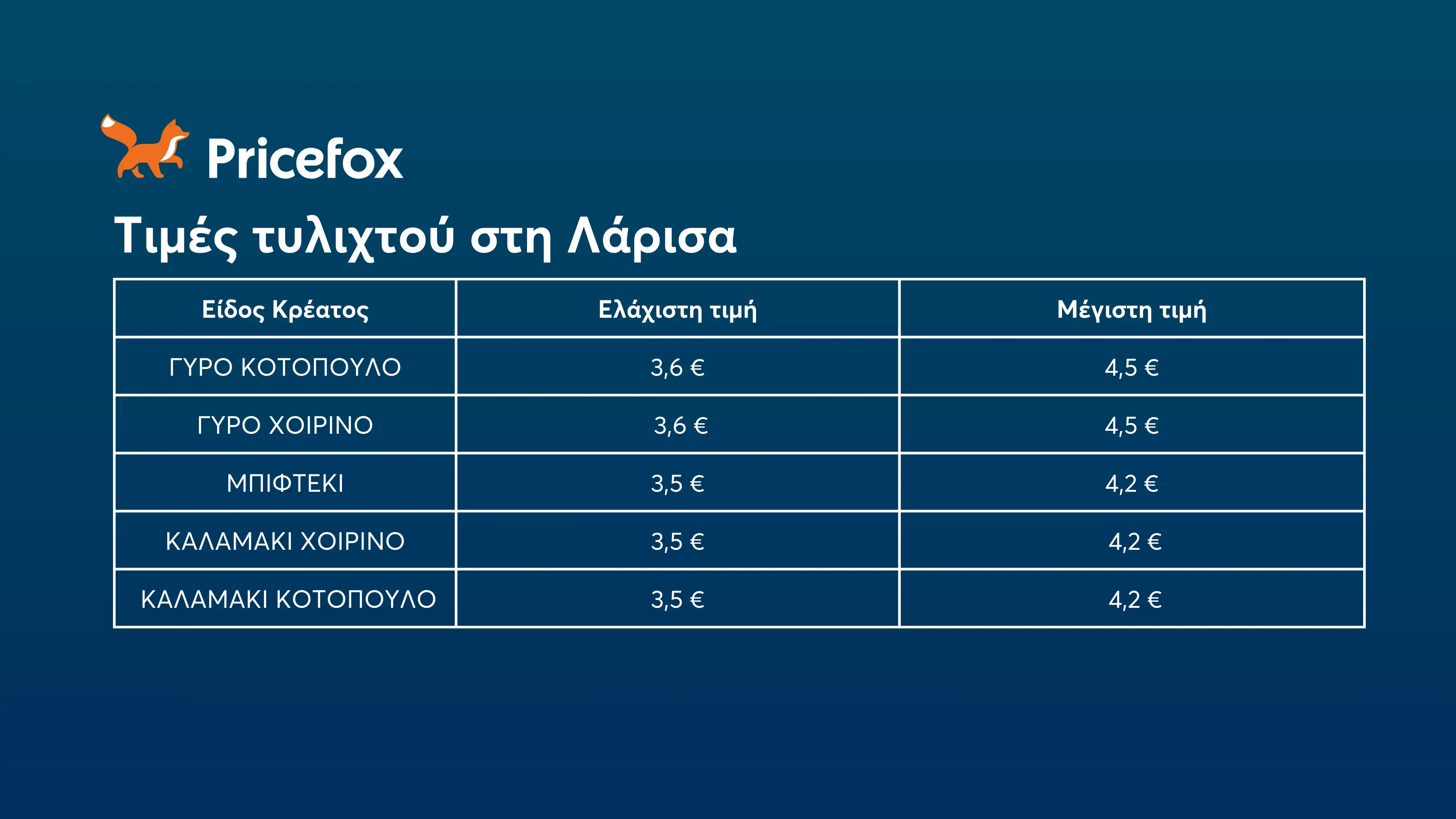 Στην Λάρισα, το φθηνότερο τυλιχτό σερβίρεται στα 3,50€, ενώ το ακριβότερο στα 4,60€, με ακριβότερη επιλογή αυτή του γύρου.